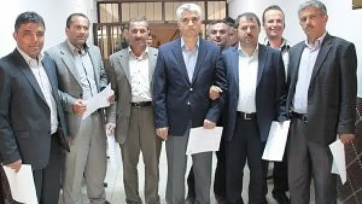 Mazbatalarını alan iki komşu ilçe başkanları ve Meclis üyeleri, birlikte hatıra fotoğrafı çektirdi.