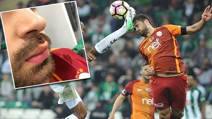 Galatasaray'ın deplasmanda Bursaspor'u 5-0 mağlup ettiği maçın gollerinden birine imza atan Ahmet Çalık, 42. dakikada Faty'nin darbesiyle yerde kaldı.