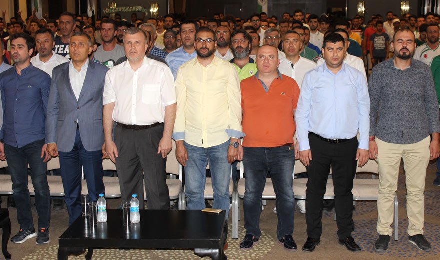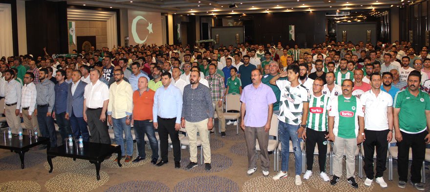 Konyaspor’un her zaman arkasında olduklarını belirten Nalçacılılar Taraftarlar Derneği Başkanı İbrahim Apalı, ‘Her sezon öncesi düzenlediğimiz birlik beraberlik ve dayanışma gecesi geleneksel hale geldi. Gene burada toplandık. Aykut Hocamızın da gitmesiyle birlikte çok zor bir dönem bekliyor bizi. Başakşehir’de 4 gol yediğimizde de Gençlerbirliği’nde 5 gol yediğimizde şarkılar söyleyen takımı küme düşse bile alkışlayan Nalçacılılar grubunu bu sene de görmek istiyoruz. Buna sonuna kadar inanıyorum. Bunun hakkından da geleceğimize eminim. Güzel projelerimiz var. İnşallah bunları gerçekleştireceğiz.’ şeklinde konuştu.