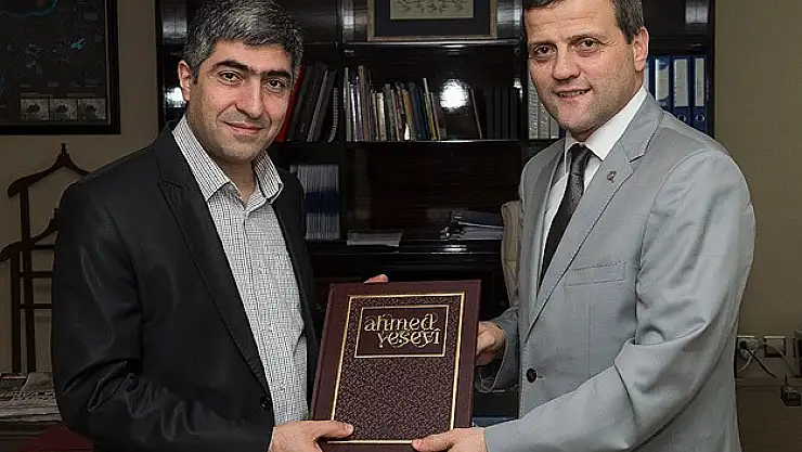 Ahmet Yesevi Üniversitesi Rektörü Prof. Dr. Mustafa Yıldız, AA Genel Müdür Yardımcısı ve Genel Yayın Yönetmeni Metin Mutanoğlu'nu makamında ziyaret etti.