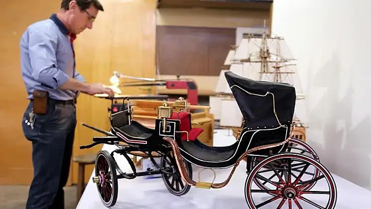 Abacı, bu ölçekte ahşaptan talika, fayton, gemi ve tarım aleti maketi yapan bakanlığın tek sanatçısı olarak çalışmalarını sürdürüyor.