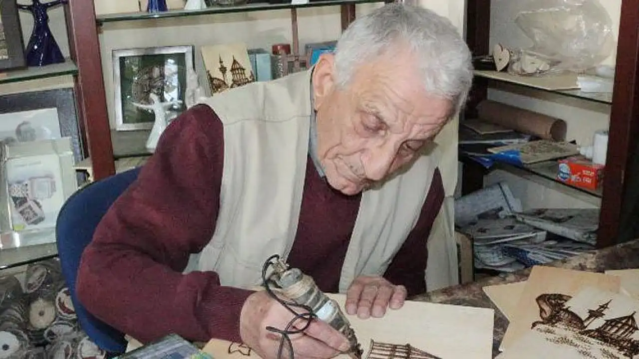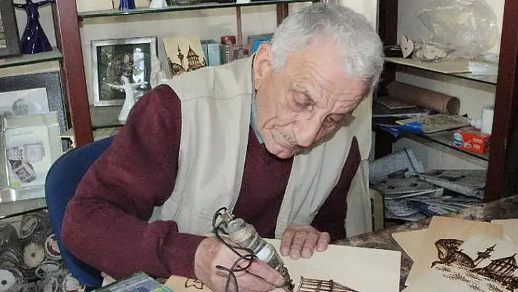 Konya'da yaşayan 78 yaşındaki Oğuz Demir, 35 yıl önce kaşık boyayarak başladığı işini ahşap yakma sanatına çevirerek eserler üretiyor.