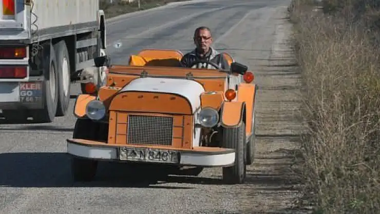 Yalova'nın Çınarcık ilçesinde yaşayan marangoz Recep Er'in, klasik otomobillerden esinlenerek 1987'dea ahşaptan yaptığı araç, ilgi çekiyor