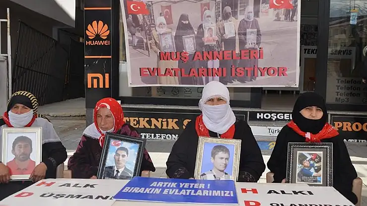 Muş'ta çocuklarının, terör örgütü PKK tarafından dağa götürülmesinden HDP'yi sorumlu tutan aileler, partinin il başkanlığı önünde oturma eylemi yaptı.