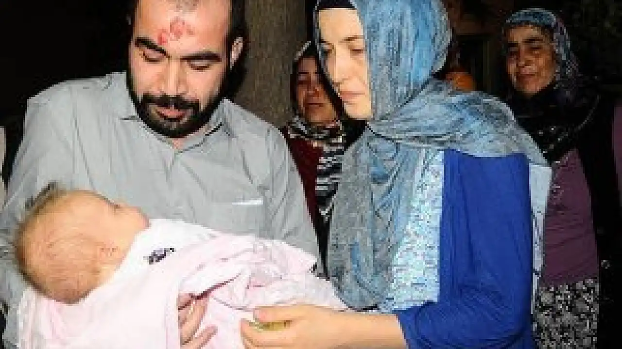 Türk bayrakları asılı babaevinin önünde adeta bayram havası yaşayan aile, oğullarının sağ salim geldiği için kurban kesti. Kurbanın kanından da Çil'in alnına sürüldü.