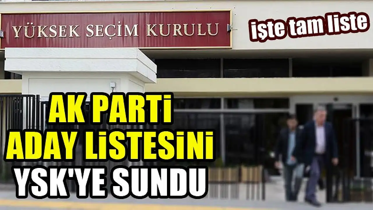 AK Parti, 24 Haziran'da yapılacak Cumhurbaşkanı ve 27. Dönem Milletvekili Genel Seçimi için milletvekili aday listesini Yüksek Seçim Kuruluna (YSK) verdi.