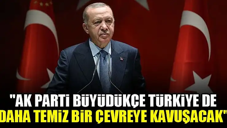 Cumhurbaşkanı Erdoğan, AK Parti büyüdükçe Türkiye'nin de daha yeşil ve daha temiz bir çevreye kavuşacağını belirtti.