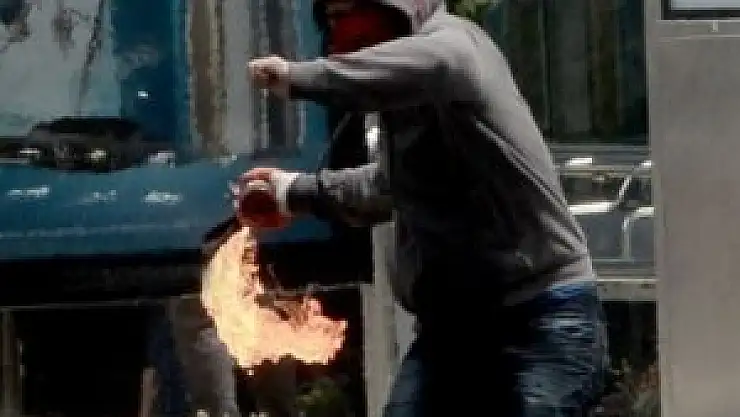 Saldırganlar, ara sokaklara kaçtı. Molotofkokteylinin isabet ettiği binada hasar oluştu.