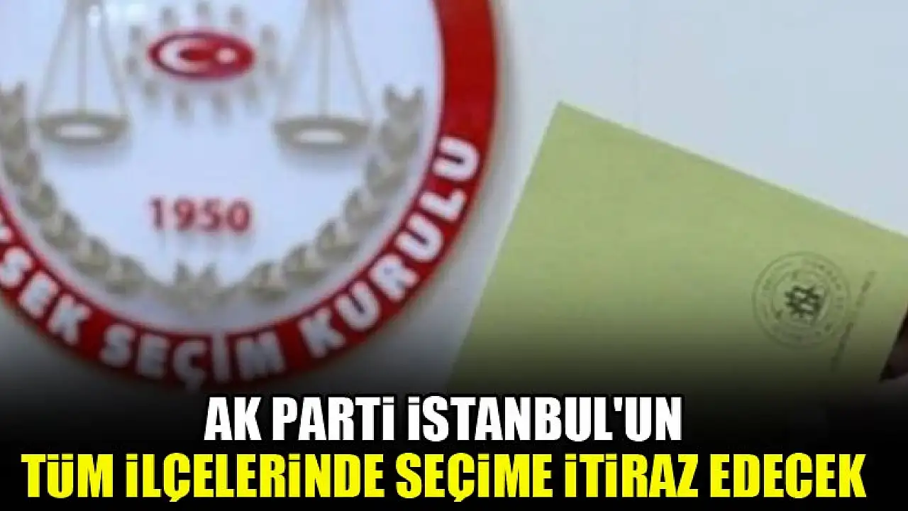 AK Parti, İstanbul'un tüm ilçelerinde seçim sonucuna itiraz etme kararı aldı. AK Partili kurmayların itiraz için bugün saat 15'e kadar itirazlarını ilgili mercilere bildirecek.