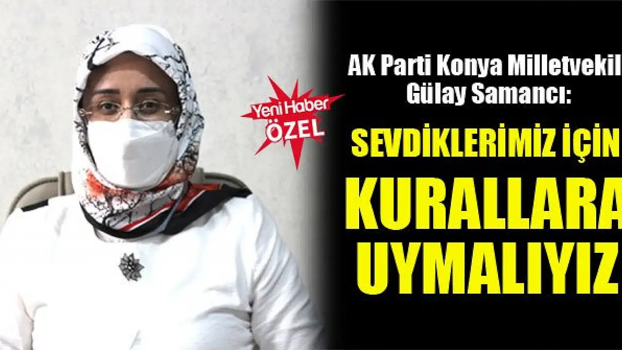 Koronavirüsle mücadele konusunda herkesin üzerine düşeni yapması gerektiğini vurgulayan AK Parti Konya Milletvekili Gülay Samancı, 'Mücadelemizi hep birlikte dayanışma içinde yürütmeliyiz. Sevdiklerimiz için maske, mesafe ve hijyen kurallarına uymak zorundayız' dedi.