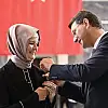 Kayıt işlemlerini tamamlayan Aksakal'ın, milletvekili rozetini eşi Feride Aksakal taktı.