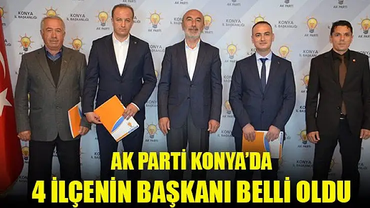 AK Parti Genel Merkez Teşkilatlanma Başkanlığı tarafından Konya'da kongreleri ertelenen 4 ilçede ilçe başkanlarının ataması yapıldı.
