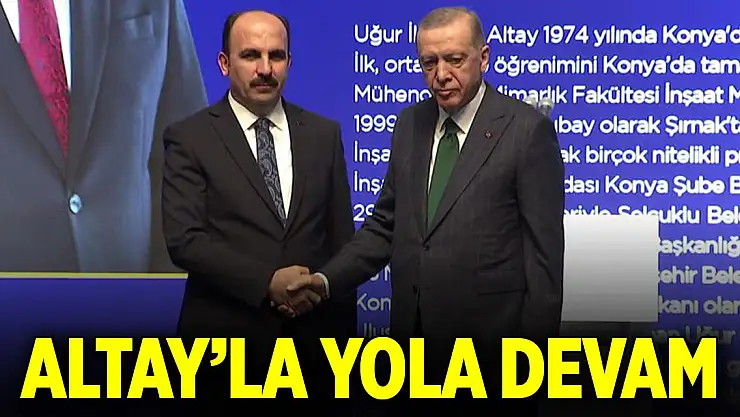 Daha sonra belediye başkan adaylarının isimlerini tek tek açıklayarak sahneye çağıran Cumhurbaşkanı Erdoğan, Konya Büyükşehir Belediye Başkanı Uğur İbrahim Altay’ı yeniden Konya Büyükşehir Belediye Başkan Adayı göstererek “yola devam” dedi.