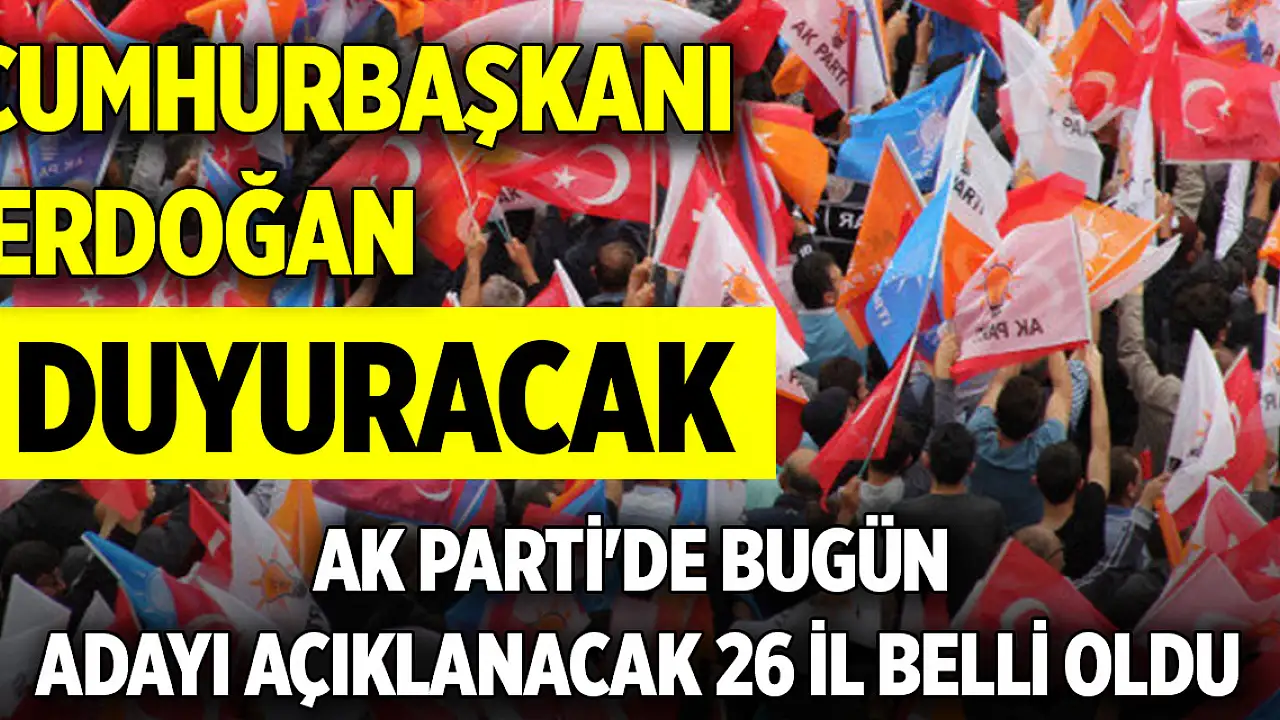 - AK Parti'de bugün adayı açıklanacak 26 il belli oldu: Cumhurbaşkanı Erdoğan duyuracak