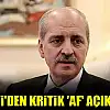 AK Parti Genel Başkan Vekili Numan Kurtulmuş MHP'nin af teklifiyle ilgili olarak, 'Af konusunda örneğin Adalet Bakanlığımız önemli çalışmalar yaptı.