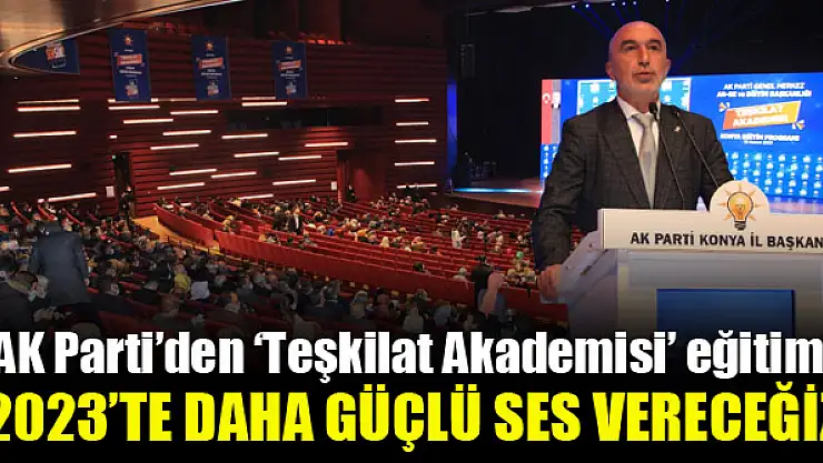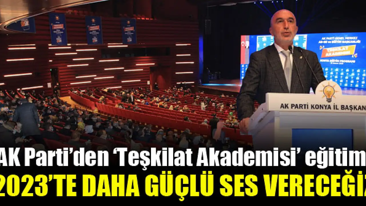 AK Parti Genel Merkez Araştırma, Geliştirme ve Eğitim Başkanlığı’nın Teşkilat Akademisi Eğitim Programı Konya’da yapıldı. Selçuklu Kongre Merkezi’nde düzenlenen eğitim programına Aile ve Sosyal Hizmetler Bakanı Derya Yanık, Türkiye Büyük Millet Meclisi Dijital Mecralar Komisyonu Başkanı ve Hatay Milletvekili Hüseyin Yayman, Sağlık, Aile, Çalışma ve Sosyal İşler Komisyonu Başkanı ve Erzurum Milletvekili Recep Akdağ, AK Parti Grup Başkanvekili ve Kahramanmaraş Milletvekili Mahir Ünal, önceki dönem Antalya Büyükşehir Belediye Başkanı ve MKYK Üyesi Menderes Türel, 25. Dönem İstanbul Milletvekili Uğur Işılak ve Genel Merkez Ar-Ge Eğitim Başkan Yardımcısı Veli Tolu ile çok sayıda teşkilat mensubu katıldı.