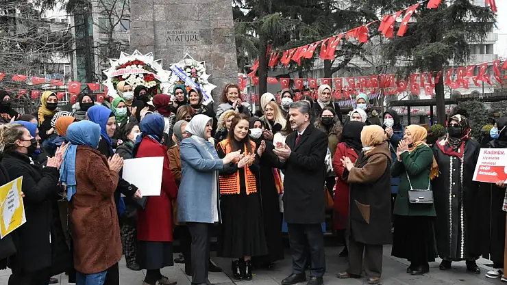 AK Parti İl Kadın Kolları Başkanlığı tarafından bugün Meydan Parkı içindeki Atatürk anıtı önünde Dünya Kadınlar Günü nedeniyle bir basın açıklaması yapıldı.