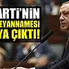 AK Parti, Erdoğan'ın katılımı ile az sonra seçim beyannamesini açıklayacak. Ortaya çıkan beyanname 360 sayfadan ve 16 başlıktan oluşuyor. Kapakta ise "Yaparsa yine AK Parti yapar" yazısı dikkat çekiyor.