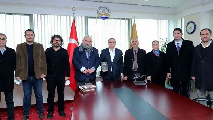 Trakya Üniversitesi akademisyenlerinden Doç. Dr. Aziz Tekdemir, Doç. Dr. Bülent Yıldırım, Dr. Öğr. Üyesi Bülent Atalay, Öğr. Gör. Haluk Kayıcı, Arş. Gör. Dr. Emin Ünsal, Arş. Gör. Dr. Şenay Öztürk Yılmaz, Arş Gör. Muhammed Tağ ile Ceren Yayınevi ve Kitapçılık sahibi Şeref Kurtiş Rektör Prof. Dr. Erhan Tabakoğlu'na bir ziyaret gerçekleştirdiler. Ziyarette kısa süre önce raflarda yerini alan, Trakya Üniversitesi ve Türkiye'nin önemli üniversitelerinin akademisyenlerinin bölüm yazarlığı yaptığı Edirne'nin Ardı da Bayler isimli eserin yanı sıra müellifi oldukları eserleri de imzalayarak Prof. Dr. Erhan Tabakoğlu'na takdim ettiler.