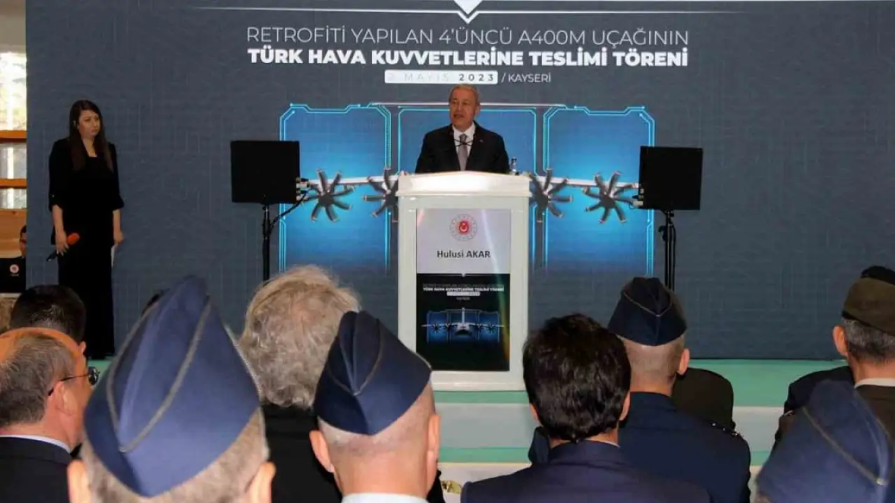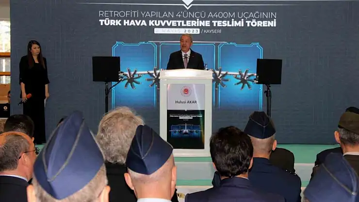 Bakan Akar, 12'nci Hava Ulaştırma Ana Üs Komutanlığındaki, "Retrofiti Yapılan 4'üncü A400M Uçağının Türk Hava Kuvvetlerine Teslim Töreni'nde, retrofit anlaşmasının Ekim 2019'da imzalandığını hatırlattı. Anlaşma çerçevesinde retrofit işlemleri tamamlanan 3 uçağın Hava Kuvvetleri Komutanlığına teslim edildiğini belirten Akar, bugün de retrofiti tamamlanan 4'üncü uçağı teslim aldıklarını aktardı. Dünyada sadece 4 merkezde yapılabilen ve en gelişmiş kargo uçaklarından olan A400M'nin retrofit işlemlerinin, Kayseri 2'nci Hava Bakım Fabrikası'nda gerçekleştirilmesini "bir gurur vesilesi" olarak nitelendiren Akar, "Ülkemizin ve Kayserimizin yüz akı olan Fabrikamız, savunma ve havacılık alanında, tarihinden gelen tecrübeyle faaliyetlerini başarıyla sürdürmekte, kalifiye personeli, imkan ve kabiliyetleri ile savunma sanayiimize ve ülke ekonomisine büyük katkılar sağlamaktadır" diye konuştu. Önde gelen havacılık firmalarından Airbus ile yapılan anlaşmayla fabrikaya ilave yeteneklerin kazandırıldığını vurgulayan Akar; "Türkiye'de öncü bir sanayi şehri olan Kayserimiz de teknoloji ve üretim merkezi olma yolunda önemli bir adım daha atmıştır. İnanıyoruz ki önümüzdeki dönemde dost ve müttefik ülke uçaklarının retrofit işlemleri de fabrikamızda gerçekleştirilecek, bu şekilde ülke ekonomisine çok daha fazla katma değer sağlanmış olacaktır" ifadelerini kullandı. Yardım faaliyetleri, tahliye operasyonları, askeri harekatlar, personel ve malzeme nakli gibi geniş bir çerçevede kullanılan A400M'lerin en son 6 Şubat depremlerinde büyük bir fayda gösterdiğini dile getiren Akar, şunları söyledi;