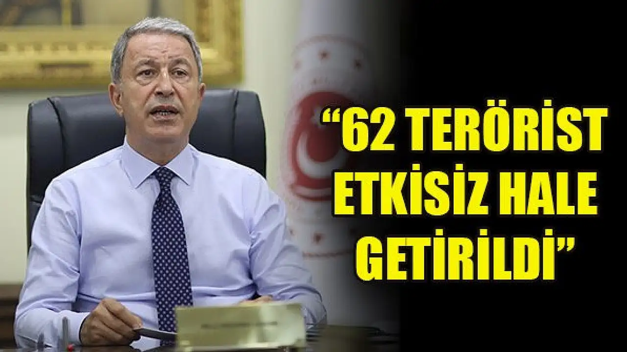 Milli Savunma Bakanı Hulusi Akar, Pençe Kaplan Operasyonu'nda şu ana kadar 62 teröristin etkisiz hale getirildiğini açıklayarak ''Komandolarımızın nefesi, hainlerin ensesinde' dedi.