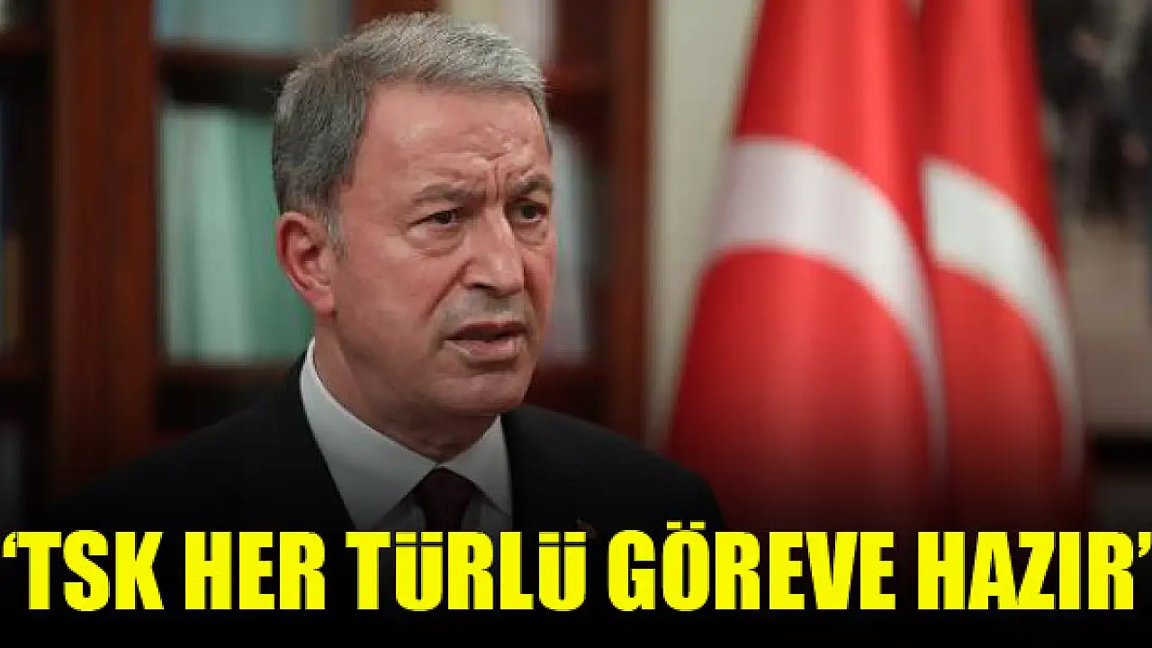Milli Savunma Bakanı Hulusi Akar, 'Türk Silahlı Kuvvetleri personeliyle, araç gereç, silah ve teçhizatıyla ve sahip olduğu üstün moral, motivasyon ve tecrübesiyle verilecek her türlü görevi yapmaya hazırdır.' dedi.
