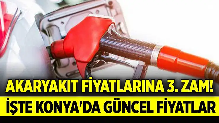 Akaryakıt fiyatlarına üçüncü zam geliyor. Sektör kaynaklarının aktardığı bilgilere göre benzinin litresinde en az 1 TL'lik zam yapılacak. Zamlı tarife 24 Ocak Çarşamba gününden itibaren geçerli olacak. Konya'da güncel akaryakıt fiyatları ne kadar? Detaylar haberimizde...
