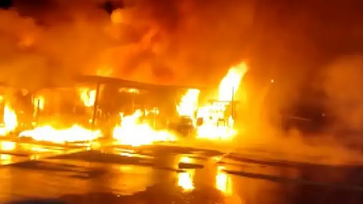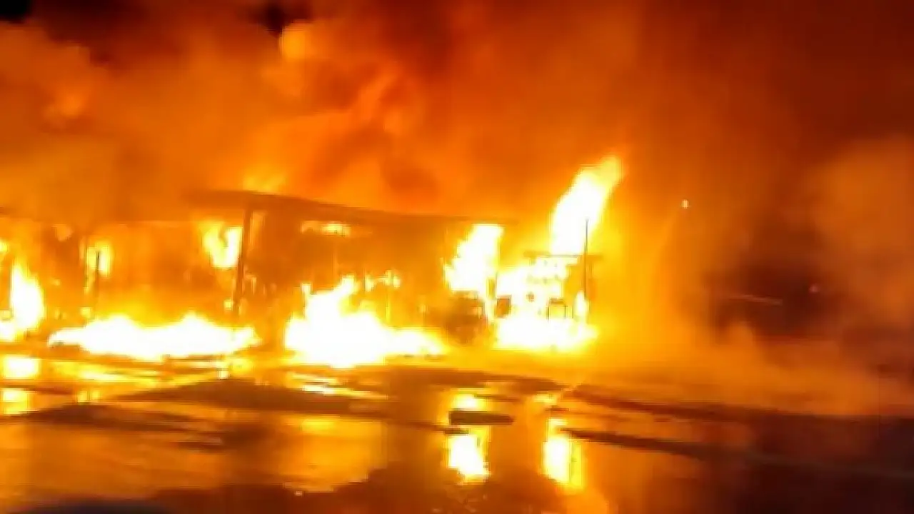 Akaryakıt istasyonu yanında korkutan yangın