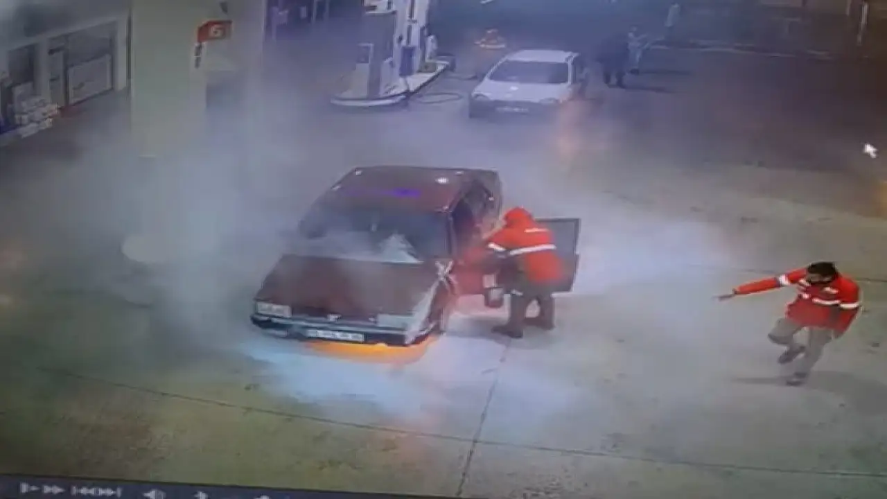 Olay, perşembe günü saat 20.00 sıralarında Şamlı Mahallesi Cumhuriyet Bulvarı'nda meydana geldi. Mahmut Ö.'nün akaryakıt istasyonundan yakıt aldıktan sonra çalıştırmak istediği 06 HA 1536 plakalı otomobili, motor kısmından alev aldı. Durumu fark eden istasyon çalışanı Mustafa Sarıkaya sürücüyü uyardı. Mahmut Ö. ve yanındaki arkadaşı panikle otomobili terk etti. Yangın akaryakıt istasyonu çalışanlarının müdahalesiyle söndürüldü. Olay, istasyonun güvenlik kamerasına yansıdı.