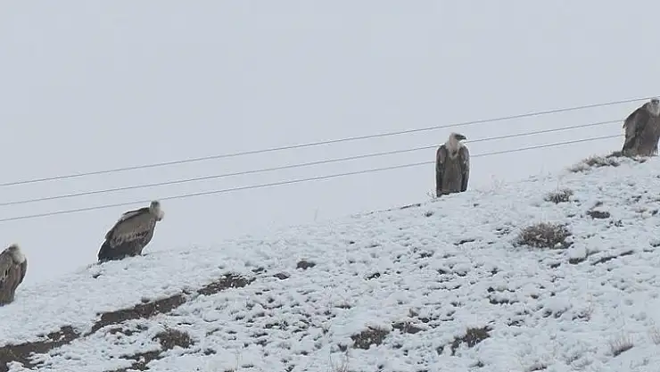 Görevliler tarafından, olumsuz hava koşulları yüzünden akbabaların aç kalmaması için doğaya yaklaşık 700 kilogram et bırakıldı.