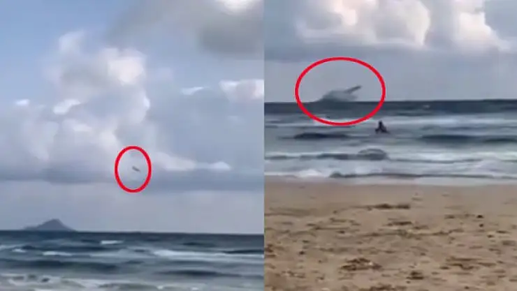 Uçağın denize açılma anı, o sırada plajda bulunan bir kişi tarafından Twitter'da paylaşıldı.