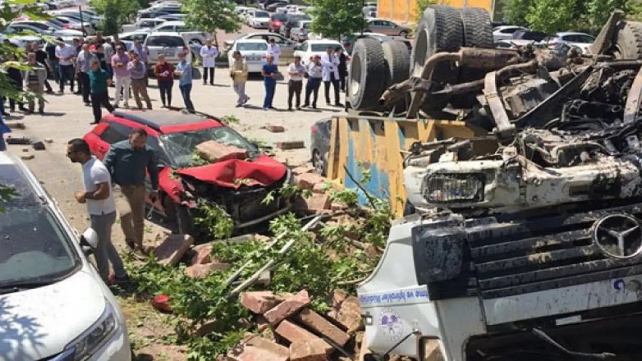Elazığ'da freni boşalan bir kamyon yoldan çıkarak hastane otoparkındaki araçların üzerine devrildi. Kazada 4 araç hurdaya döndü, sürücü ise yaralı kurtuldu.