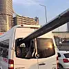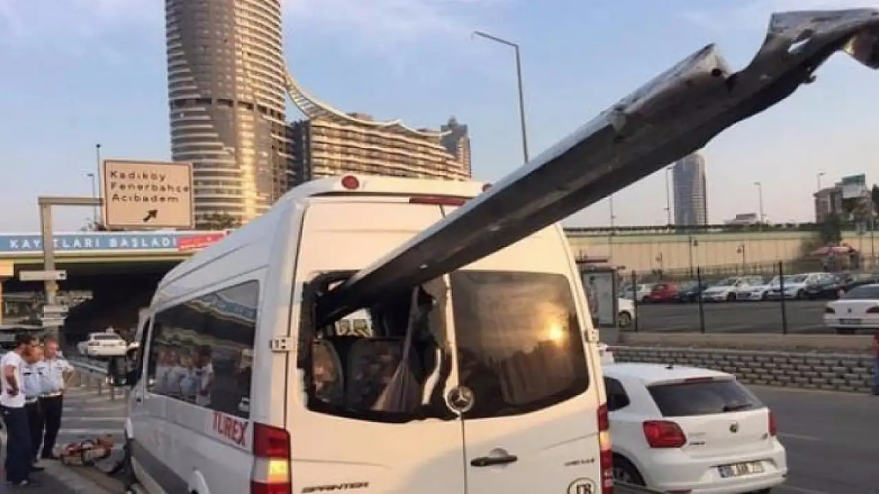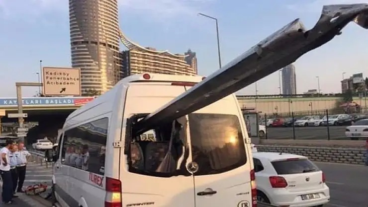 Kadıköy'de meydana gelen trafik kazasında, servis minibüsünün motor kısmından içeri giren demir bariyerler, arka camdan çıktı