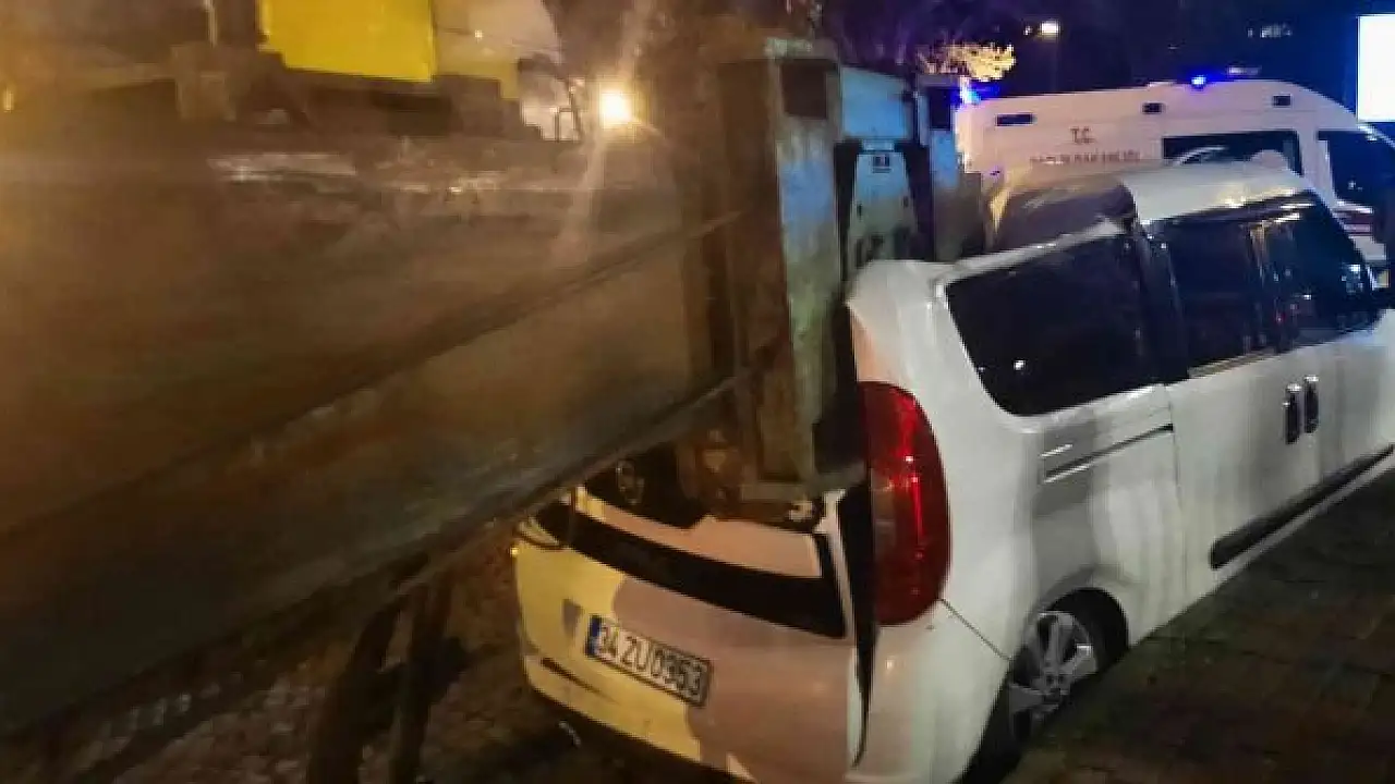 İstanbul Beşiktaş'ta tırın taşıdığı vinç yolda seyir halindeyken park halindeki 3 aracın üzerine devrildi. Olayda şans eseri ölen ya da yaralanan olmazken, araçlarda maddi hasar meydana geldi.