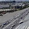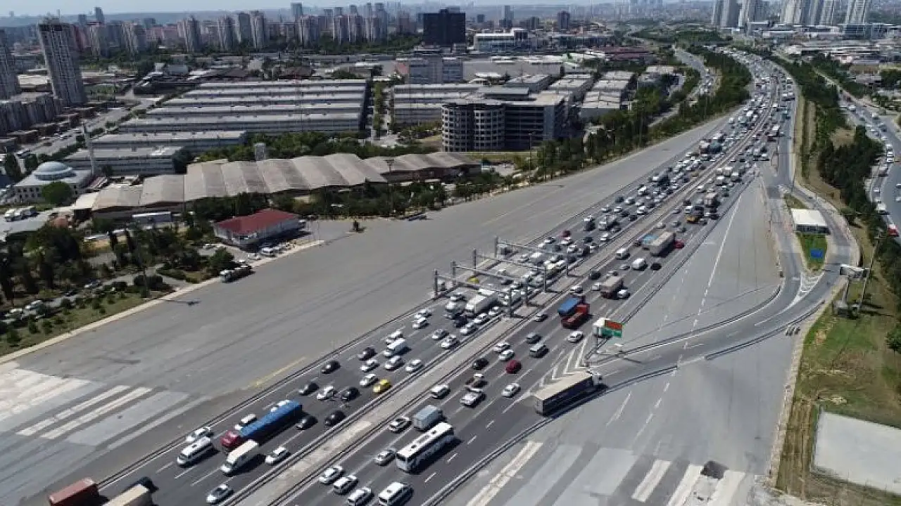 TEM Otoyolu Mahmutbeymevkiinde kilometrelerce araç trafiği oluştu. Her iki yönde de oluşan yoğun trafik havadan görüntülendi.