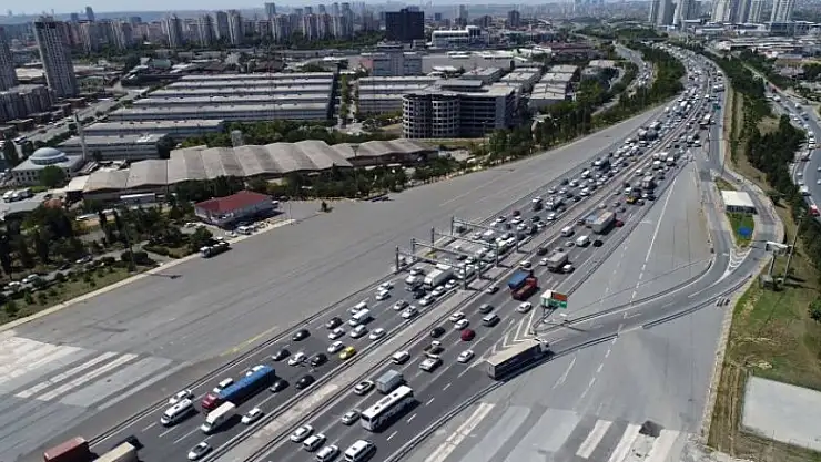Bayram tatilini şehir dışında geçirmek isteyen İstanbullar yollara düştü. TEM Otoyolu Mahmutbey mevkiinde oluşan trafik yoğunluğu havadan görüntülendi.
