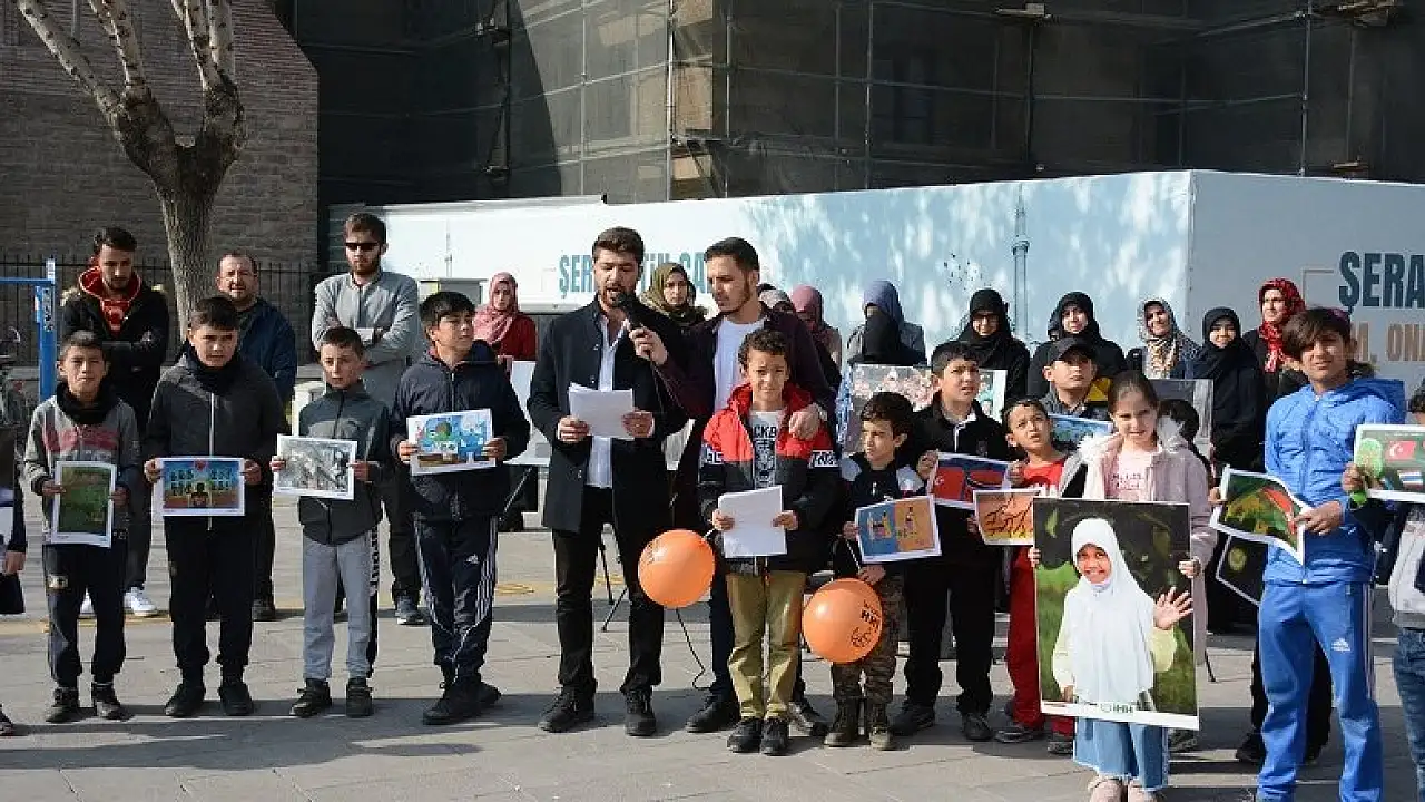 Konya Genç İHH tarafından, "Dünya Çocuk Hakları Günü" nedeniyle Şerafettin Cami'nde öğle namazı sonrası Hükümet Meydanı’nda gerçekleştirilen basın açıklamasının hemen öncesinde çocukların sorunlarına dikkat çekmek amacıyla 9 yaşındaki Ahmet Eren Karabağ, çocuk haklarını hatırlatarak farklı coğrafyalarda mağduriyet içinde olan çocukların sorunlarına değindikten sonra örnekler vererek sözlerine son verdi.