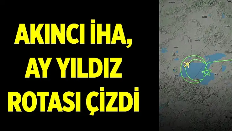 FlightRadar24 uygulamasında, Akıncı İHA'nın İran'daki görevini başarıyla tamamlayıp yurda dönmesinin ardından, Van'daki üssüne inişi öncesinde gökyüzünde ay yıldız rotası çizdiği görüldü.