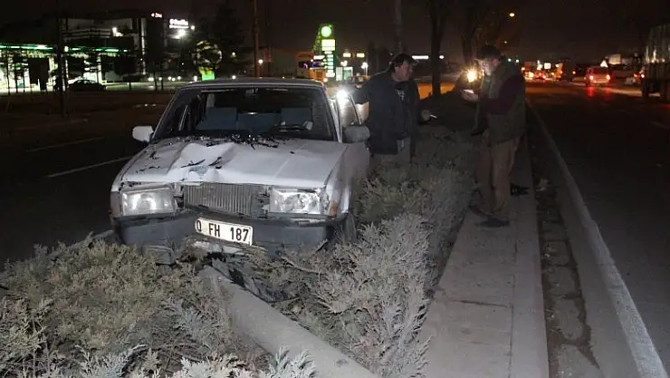 KONYA'da refüjdeki aydınlatma direğine çarpan otomobilin alkollü sürücüsü Kazım Şen (67), yaralandı.