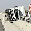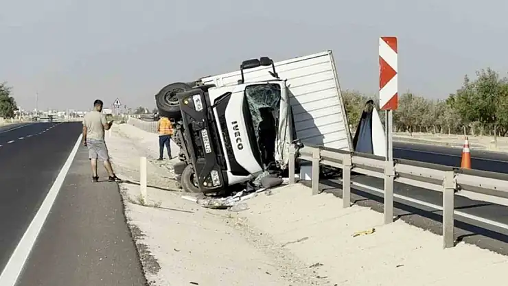 Aksaray-Konya kara yolun bariyerlere çarpan kamyonet yan yattı