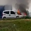 Aksaray-Konya Karayolu Aratol Kavşağında hafif ticari araç alev alev yandı