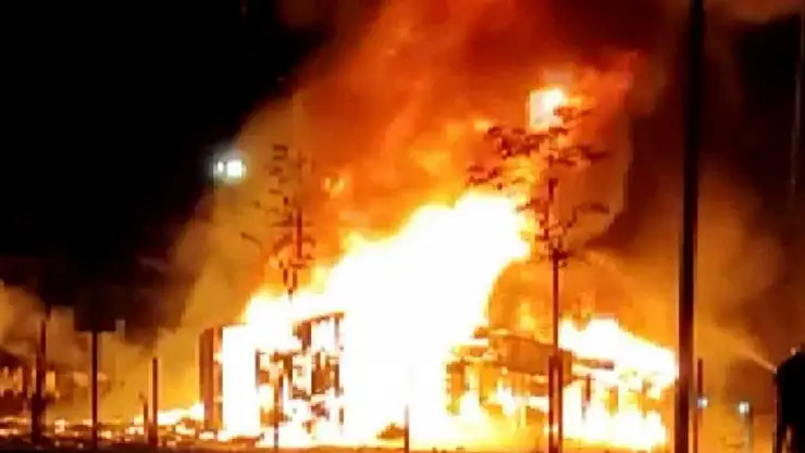 Aksaray'da sürücüsünün direksiyon hakimiyetini kaybetmesi sonucu devrilen ve kaza sonrası yanmaya başlayan tır adeta alev topuna döndü. Akaryakıt istasyonunun hemen önünde yaşanan olayda facianın eşiğinden dönülürken, patlamaların da yaşandığı korku dolu anlar kameralara anbean yansıdı.