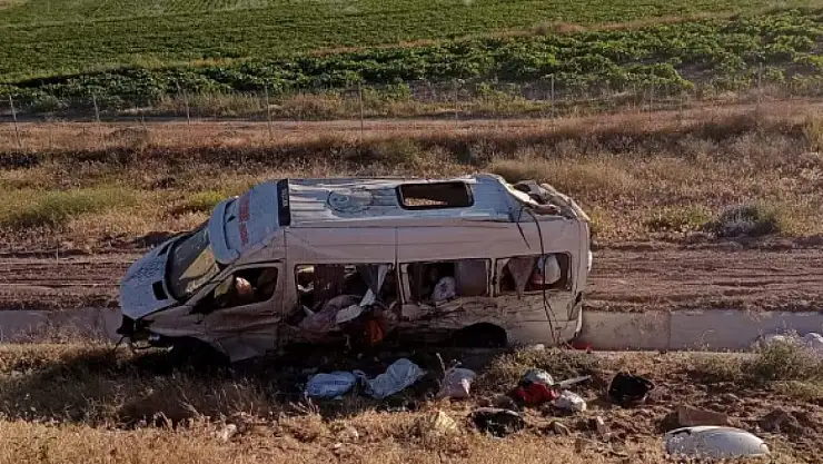 Aksaray'da fındık işçilerini taşıyan minibüs devrildi 24 yaralı