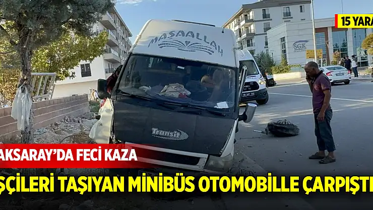 Aksaray'da işçileri taşıyan minibüs otomobille çarpıştı: 15 yaralı
