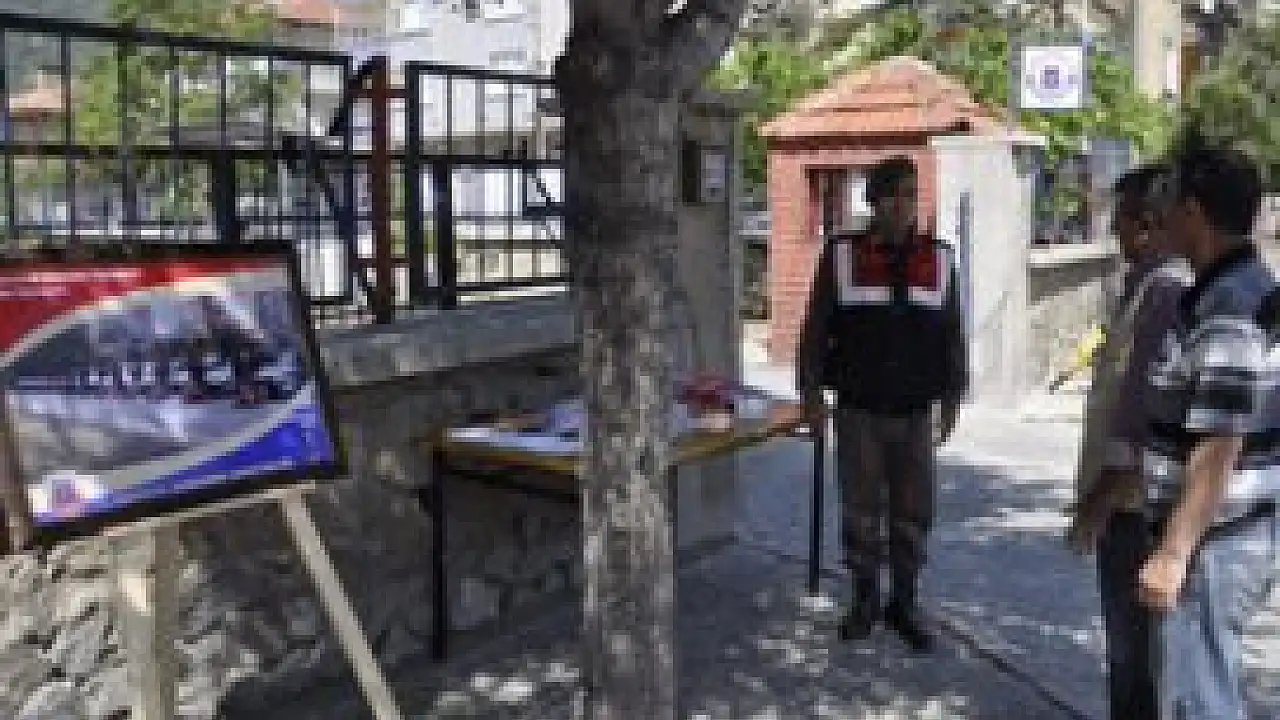 İlçe Jandarma Bölük Komutanlığı önünde açılan sergide, yıl içerisinde yapılan faaliyetler ve trafik kazaları ile ilgili fotoğraflar sergileniyor. Açılan sergi yoldan geçen vatandaşların dikkatini çekerken, görevli trafik tim komutanlığı personeli tarafından da vatandaşlar bilgilendirilerek çeşitli hediyeler veriliyor. Sergilenen fotoğrafların üzerinde ‘Emniyet Kemeri yaşamla ölüm arasındaki bağdır’, ‘Karlı havalarda dikkat edin kış lastiklerinizi mutlaka takın’, ‘Trafikle ilgili bilinçli hareket etmek milli bir görevdir’, ‘Trafik kazası doğal bir afet değildir ama en az onun kadar can yakar’, ‘Her trafik kuralı en az bir hayat kadar değerlidir’ gibi çeşitli sloganlarla vatandaşlara trafik konusunda da uyarılarda bulunuluyor.