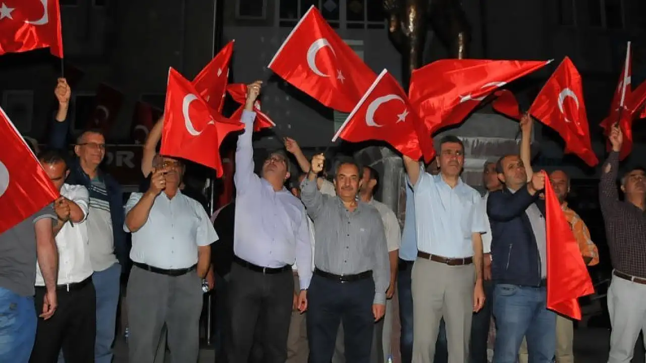 Konya'nın Akşehir ilçesinde, Cumhuriyet Meydanı'nda demokrasi nöbetlerini sürdüren binlerce kişi darbe girişimine tepki göstermeye devam ediyor.