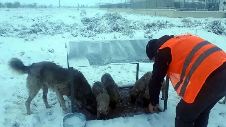 Akşehir Belediyesi yoğun kar yağışı ve havaların soğuması nedeniyle yiyecek bulmakta zorlanan sokak hayvanları için çalışmalarını sürdürüyor.