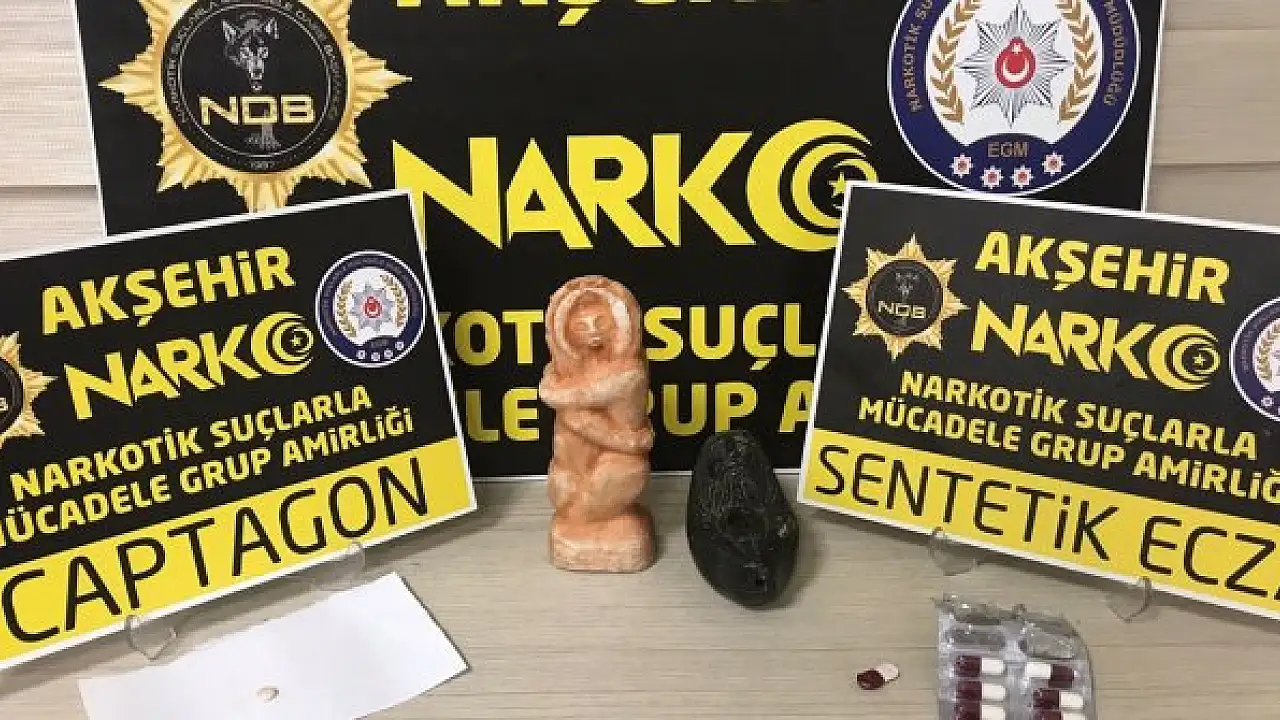 Ekipler, şehirlerarası yolcu terminalinde yaptığı uygulamada bir otobüsteki yolcu F.T'nin üzerinden bir miktar uyuşturucu hap ve 2 heykel ele geçirdi.
