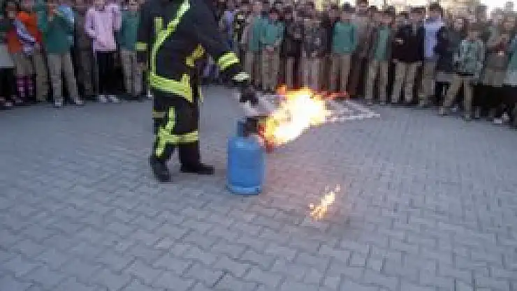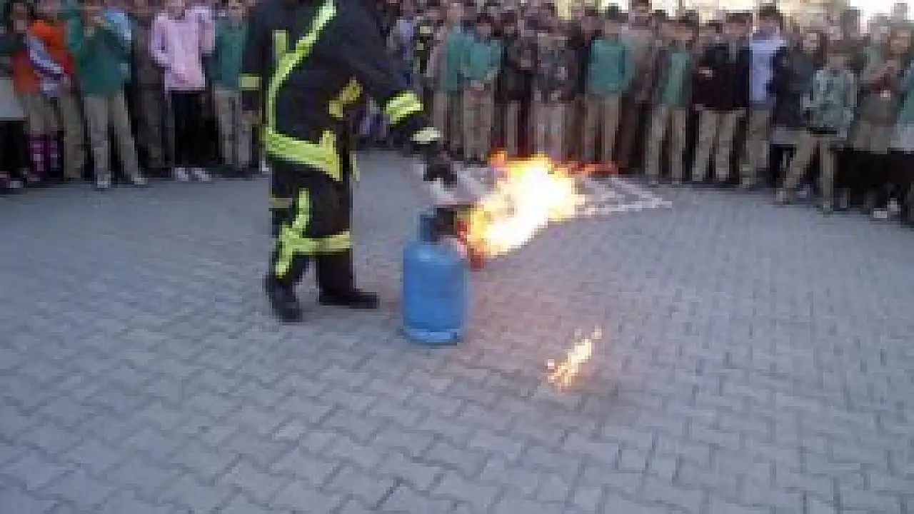 Bu kapsamda Atatürk Ortaokulu'nda tatbikat düzenlendi. Tatbikatta çalan alarmla öğrencilere deprem anında ne yapılacağı uygulamalı olarak anlatılırken ikinci alarmda okul binasını düzenli bir şekilde boşaltmaları sağlandı. Bu arada okulun en üst katında sis bombaları ile temsili olarak yangın çıkartıldı. İtfaiye tarafından okulun en üst katında temsili olarak mahsur kalan öğrenciler merdivenli araç sayesinde kurtarıldı. Tatbikatın son bölümünde ise alev almış bir LPG tüpünün söndürülüşü ile yakılan ateşe yangın tüpleri ile müdahale uygulamalı olarak gösterildi. Tatbikat sonunda temsili olarak yaralı görevi üstlenen öğrenciler ve itfaiye erleri toplu fotoğraf çektirdi.