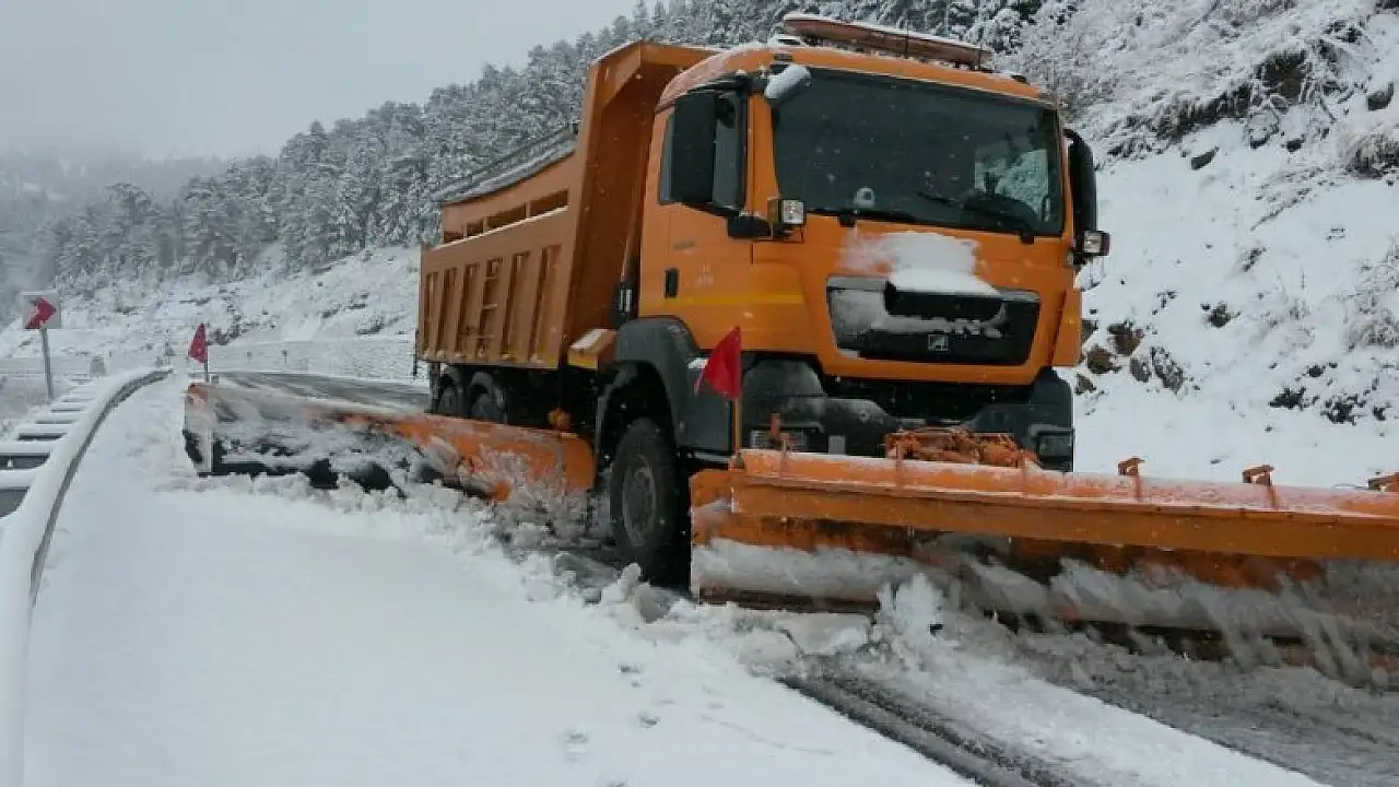 Alacabel'deki karayolları ekipleri, yolun trafiğe kapanmaması için karla mücadele çalışmalarına başladı. Ekipler, sürücüleri, araçlarında zincir bulundurmaları konusunda da uyardı.